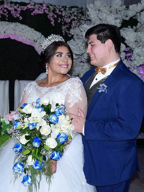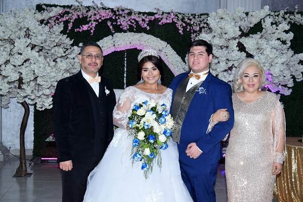 Teniendo como marco un salón profusamente arreglado de frescas flores blancas, la pareja intercambio las promesas matrimoniales rodeada sus seres queridos, entre ellos sus padres Eleazar Martínez Obregón y Xóchitl Acosta Rey, Domingo Akessler Flores e Irasema Pecina Herrera.