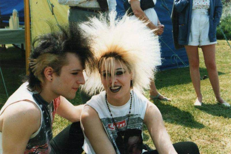Uff, el romance juvenil. Puedes notar que estos dos están realmente enamorados porque sus looks complementarios de cabello estilo rock punk. En los 80´, era común ver a personas que lucían de esta manera.