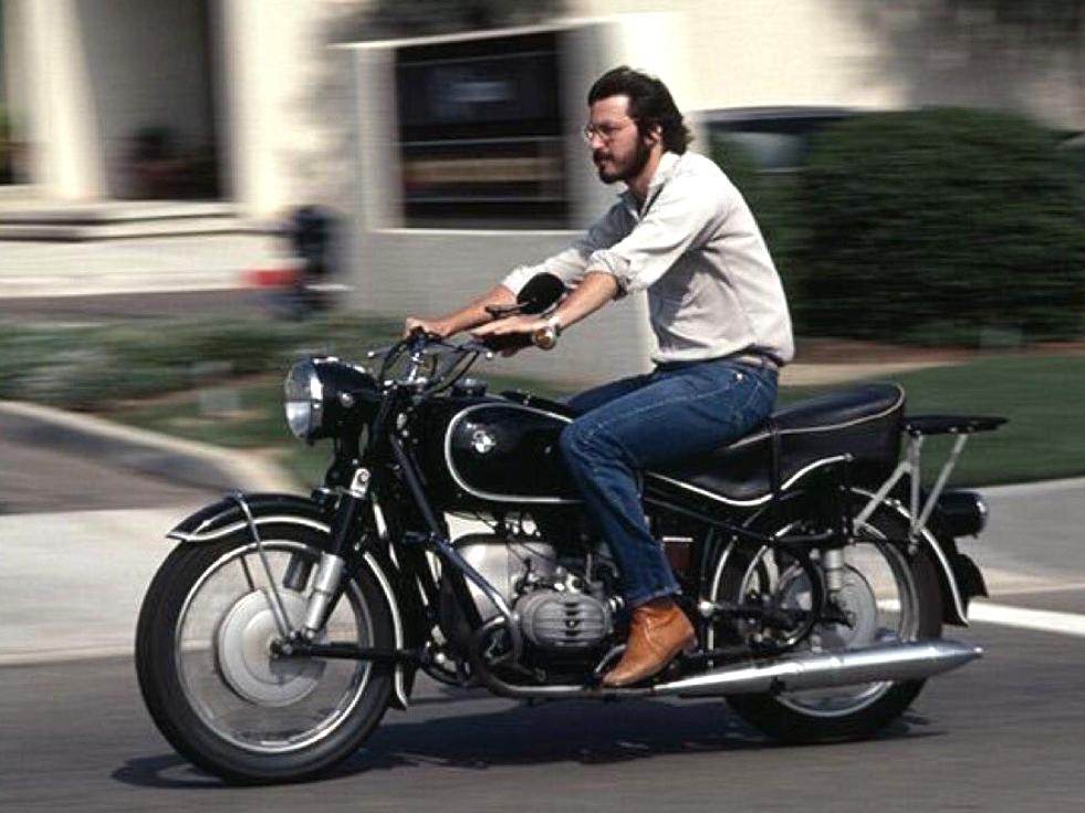 La edición de 1982 de National Geographic mostró esta fotografía de Steve Jobs conduciendo su motocicleta. No sólo que la leyenda de Apple montaba esta motocicleta BMW para ir al trabajo, sino que la estacionaba dentro del lobby de edificio de trabajo.