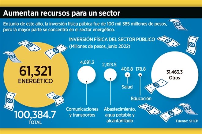 Este aumento de recursos estuvo impulsado por el alza de 130.4 por ciento que registró el sector energético, con una inversión de 61 mil 321 millones de pesos.