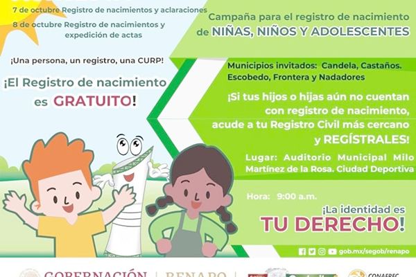 Monclova, Coahuila.- Dentro de la Campaña de Registro de Nacimiento de Niñas, Niños y Adolescente y el objetivo de garantizar el Derecho a la Identidad...