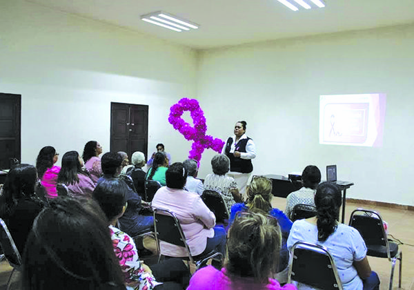 “La Lucha contra el Cáncer de Mama pretende sensibilizar a la población con platicas sobre la importancia de la detección precoz, a fin de mejorar el pronóstico y la supervivencia de los casos, eliminar las barreras que dificultan el acceso a los servicios de salud ya que esta enfermedad es la segunda causa de muerte en el mundo” se expuso en la charla.