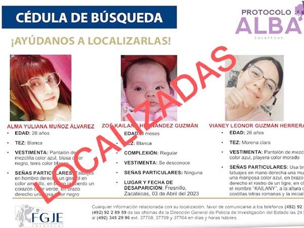 Liberan a bebé y esposa de militar secuestradas en Zacatecas