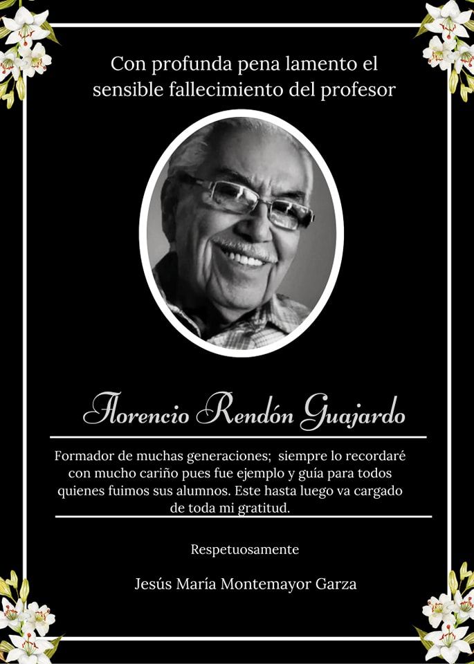 Descanse en paz el profesor Floreció Rendón Guajardo.