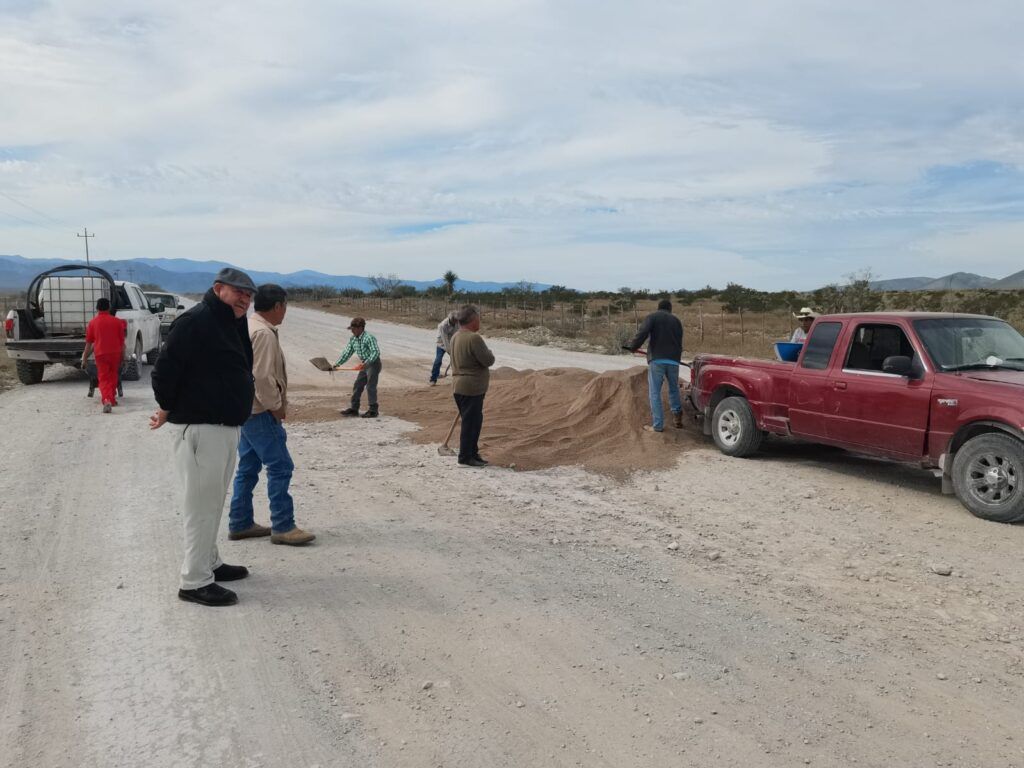 CASTAÑOS, COAHUILA. – El alcalde Juan Antonio Garza García supervisó personalmente la llegada de material y el inicio de labores para conformar y mejorar el camino al ejido Palo Blanco en beneficio de todos sus habitantes.