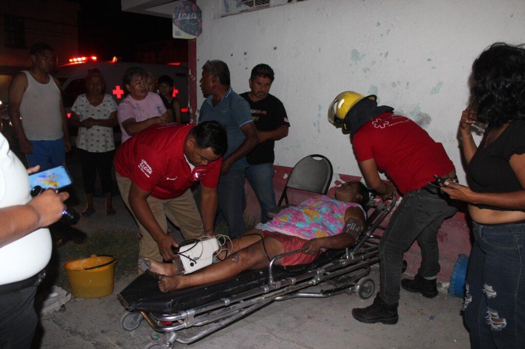 Paramédicos del GRUM atendieron en la banqueta a Juanita Guerrero Gonzáles de 42 años la cual tenía varias quemaduras y estaba en crisis nerviosa con problemas para respirar.