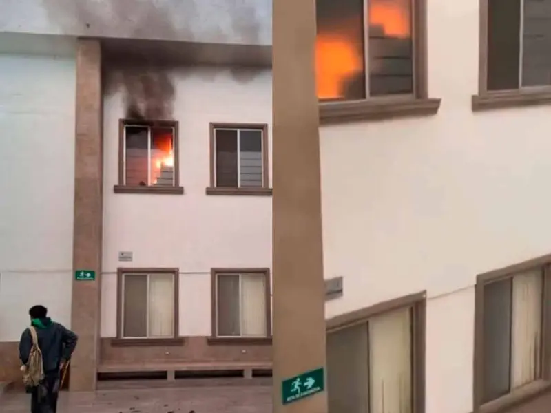 Videos e imágenes difundidas en redes sociales por estudiantes y la Asamblea Estudiantil mostraron llamas en el interior del edificio y humo negro saliendo hacia el exterior.