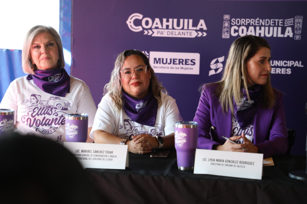En la presentación de “Ellas al Volante 2025”, también estuvo presente la alcaldesa de General Cepeda, Mayra Ramos Rodríguez; la directora de Comunicación e Imagen Institucional del Gobierno del Estado, Maribel Sánchez Tovar; la tesorera municipal, Lissette Álvarez Cuellar; la directora de Turismo del municipio, Lydia María González Rodríguez; la directora del Instituto Municipal de las Mujeres, Vanessa Fernández Tonone.