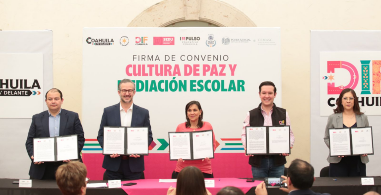 Firman convenio de colaboración DIF Coahuila, Secretaría de Educación, Fiscalía General del Estado y Poder Judicial para capacitar mediadores en los planteles de educación básica...
