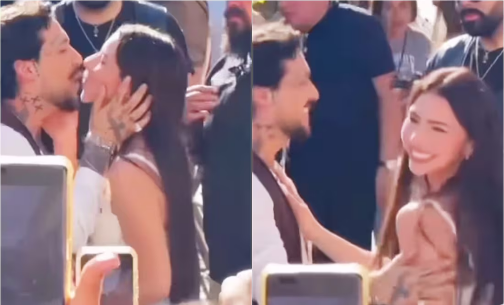 En ese momento, sus seguidores pidieron al unísono que la pareja se diera un beso frente a ellos y aunque la joven no mostró ningún ímpetu para cumplir con la petición, su esposo se acercó a ella con una sonrisa y la besó, lo que produjo una gran sonrisa en Ángela que, instantáneamente, dirigió su mirada a la cámara de los celulares de quienes los captaban.