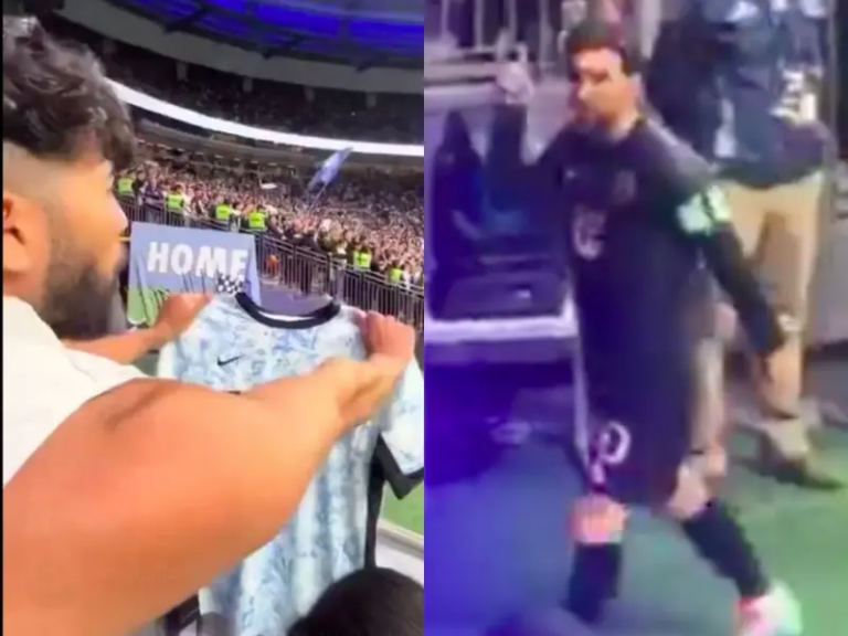 Messi explota contra aficionado que le enseña playera de Cristiano