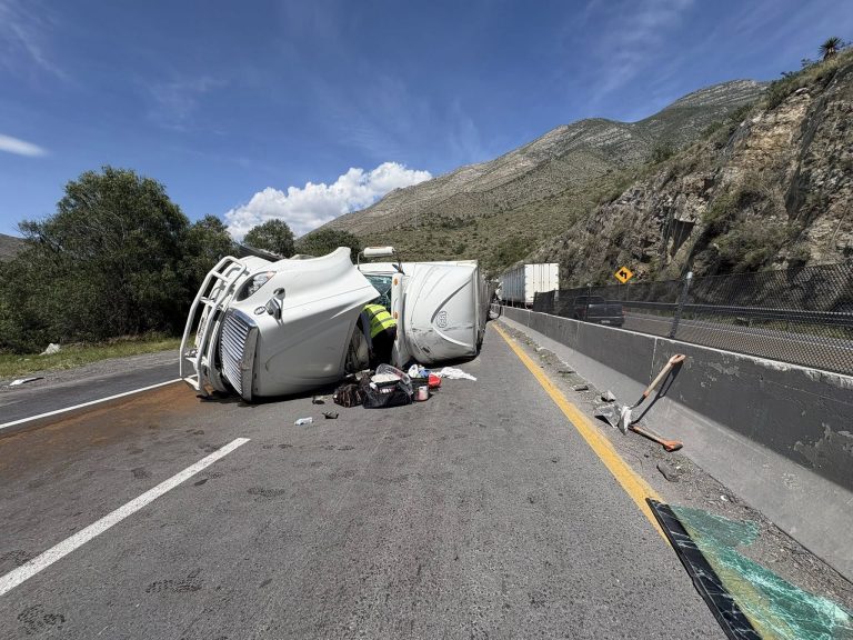 El camión que transportaba recubrimientos plásticos se volcó en una curva del kilómetro 231; el chofer resultó ileso Liz de la Fuente LA PRENSA SALTILLO,...