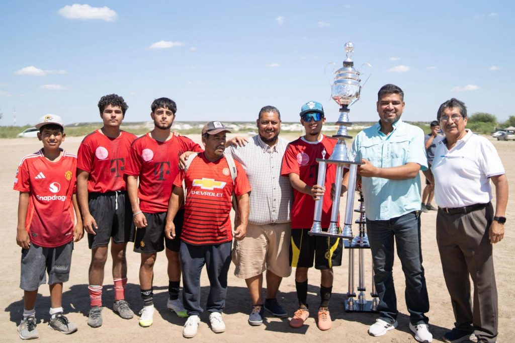 SABINAS, COAHUILA.- Con gran entusiasmo se llevó a cabo la premiación de la Liga de Futbol Edmundo López Aranda, temporada 49, dedicada a Romeo Ibarra, en donde el alcalde José Feliciano Díaz Iribarren, a través de su representante Diego González, reafirmó su compromiso de seguir impulsando el deporte como un motor de unión, disciplina y convivencia en Sabinas.