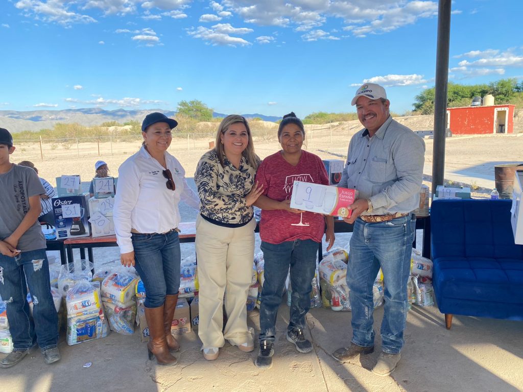 Como parte de la jornada, se llevó a cabo una convivencia con los habitantes del ejido, donde la alcaldesa también hizo entrega de un programa alimentario, reafirmando su compromiso con las familias que más lo necesitan.