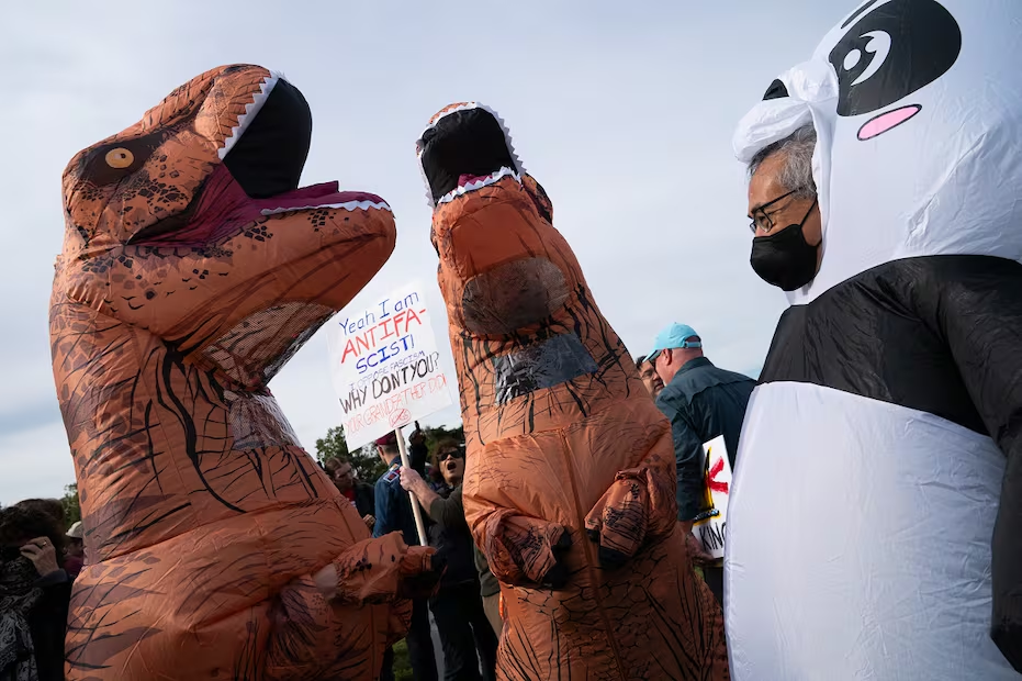 Aquí te contamos qué color visten los manifestantes y por qué algunos llevan disfraces inflables de rana y dinosaurios, entre otros.