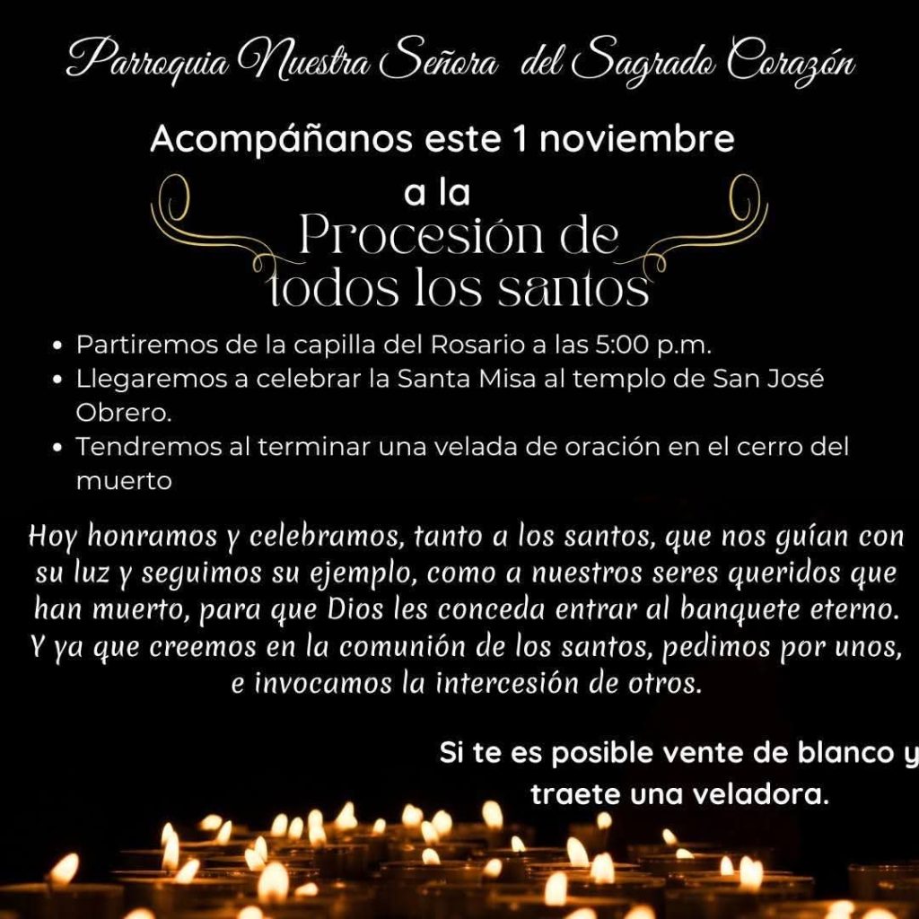 PARRAS, COAHUILA. – Con motivo del Día de Todos los Santos, la Parroquia Nuestra Señora del Sagrado Corazón invita a toda la comunidad a participar en su tradicional procesión, la cual se llevará a cabo el próximo 1 de noviembre.
