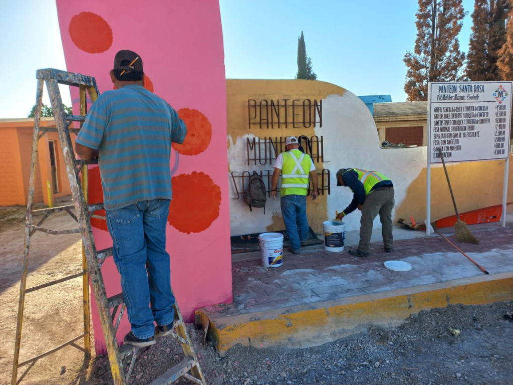 Como parte de estas acciones, también se realizó la rehabilitación de la barda perimetral y la pintura de murales alusivos al Día de Muertos, embelleciendo este espacio que en próximos días recibirá a cientos de visitantes.