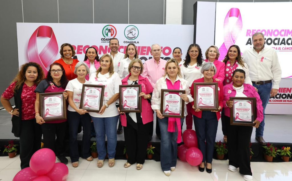 TORREÓN, COAHUILA.– En un emotivo evento denominado “Entrega de reconocimientos a asociaciones de lucha contra el cáncer de mama”, en su segunda edición, el Comité Directivo Estatal del PRI, a través del Organismo Nacional de Mujeres Priistas (ONMPRI) Coahuila, reconoció el trabajo y la entrega de mujeres que día a día dedican su tiempo, esfuerzo y corazón a acompañar, orientar y fortalecer a quienes enfrentan esta enfermedad.
