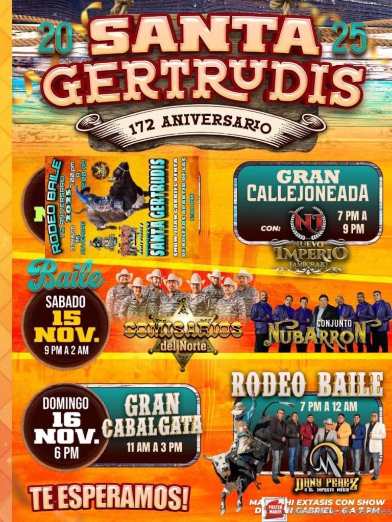 San Buenaventura, Coahuila.–La comunidad de Santa Gertrudis, perteneciente a San Buenaventura, se encuentra lista para celebrar su 172 aniversario con un programa lleno de tradición, fe y alegría que se llevará a cabo los días 15 y 16 de noviembre de 2025.
