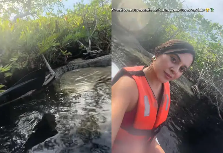 Un video compartido en TikTok por la usuaria Blanca Arellano ha generado polémica en redes sociales, luego de mostrar a dos jóvenes turistas que, mientras realizaban kayak en un manglar de Tulum, se encontraron con un cocodrilo descansando entre el agua y la arena.
