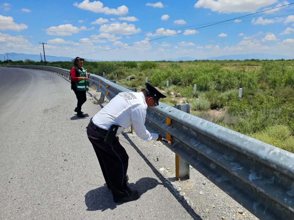 SAN BUENAVENTURA, COAHUILA.— Con el objetivo de fortalecer la seguridad vial mejorando la visibilidad para automovilistas y peatones, el Departamento de Transporte y Vialidad instaló boyas y vialetas de señalización en la Congregación Santa Gertrudis.