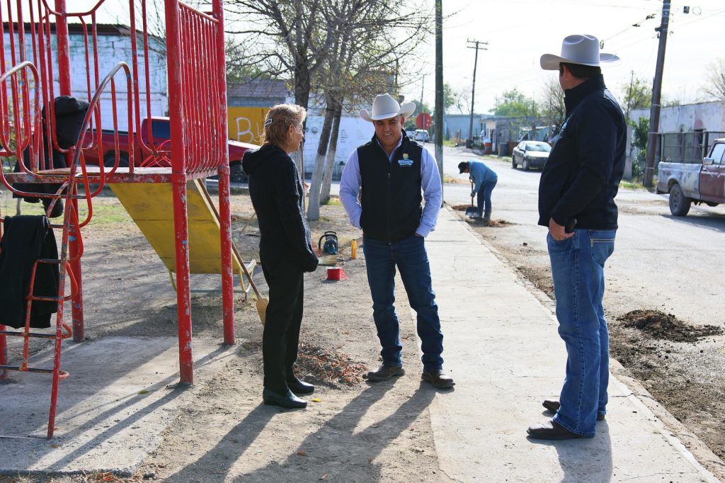 Sabinas, Coahuila.– Reafirmando su compromiso con el mejoramiento de los espacios públicos, la seguridad y el cuidado del medio ambiente, el alcalde José Feliciano “Chano” Díaz Iribarren realizó una visita de trabajo a la Villa de Agujita, donde encabezó acciones de limpieza y rehabilitación en la plaza del Barrio 7.