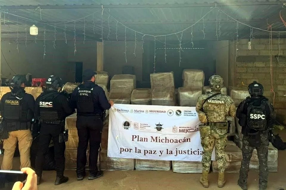 CD. DE MÉXICO.- Ocho presuntos integrantes de una célula del crimen organizado fueron detenidos en Huetamo, Michoacán, en donde además fueron aseguradas alrededor de 1.6 toneladas de mariguana, así como armas y cartuchos de diferentes calibres, informó la Fiscalía General del Estado (FGE).