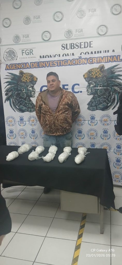 El detenido fue identificado como Alfredo “G”, alias “Fredy”, quien llevaba en su poder un total de diez envoltorios que contenían la sustancia ilícita, misma que presuntamente trasladaba desde el municipio de Sabinas con destino a la ciudad de Monclova, utilizando un tractocamión para el traslado.