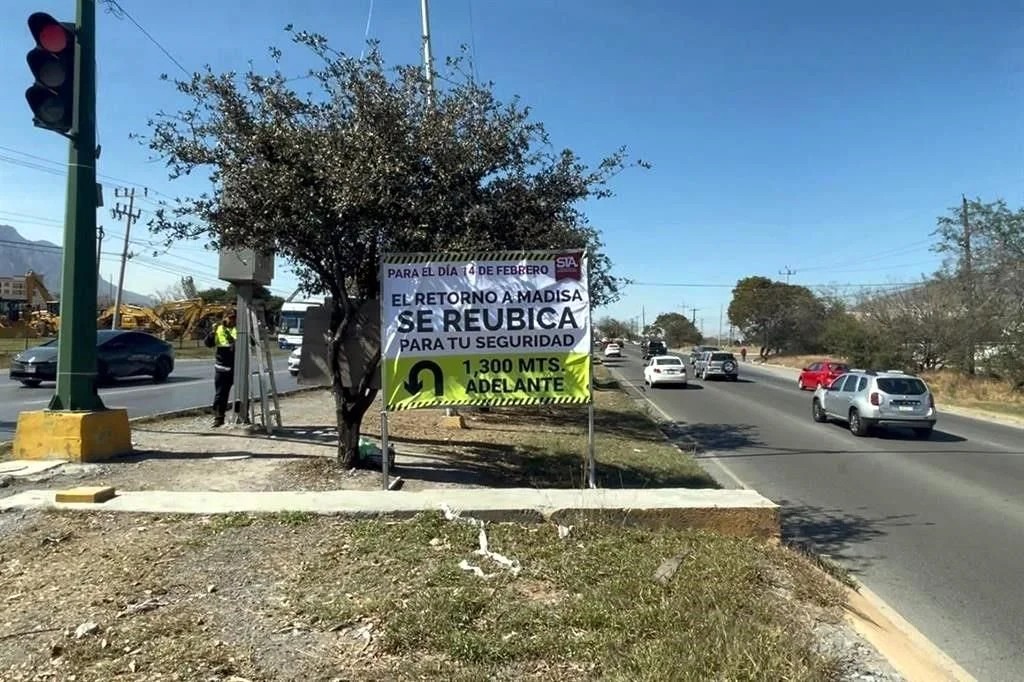 MONTERREY, NUEVO LEÓN. – El Municipio de Santa Catarina informó que a partir del próximo 14 de febrero, se reubicará el retorno vehicular ubicado en la Carretera a Saltillo, frente a la empresa MADISA, en la Colonia Industriales del Poniente.