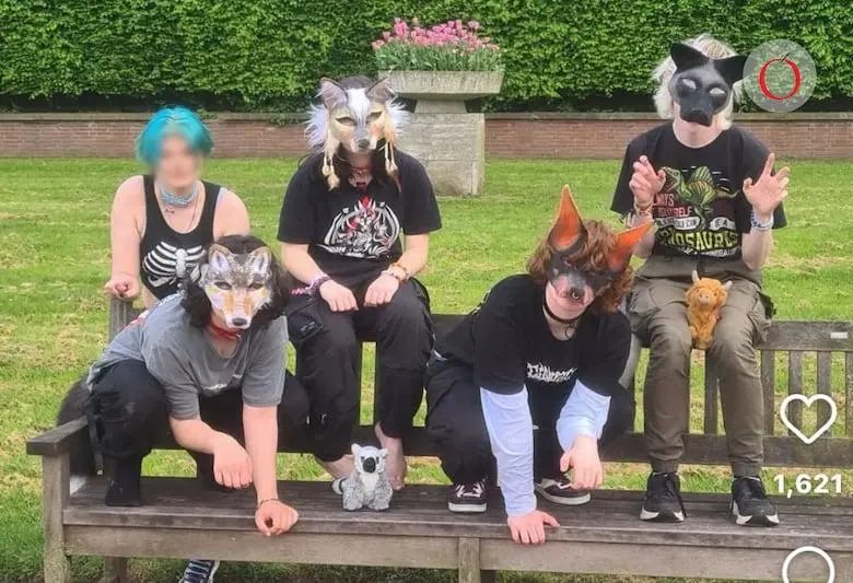 Los Therians utilizan varios accesorios para personificarse: máscaras, colas de pelo sintético, collares, correas, guantes y calcetines diseñados para parecer patas con garras y pelaje. Estos elementos les permiten expresar su identidad animal de manera visual y creativa.