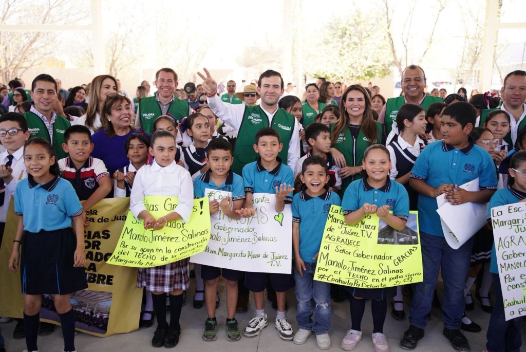 Posteriormente, en el municipio de Sabinas, se entregaron nuevas techumbres en la Escuela Primaria Niños Héroes de Chapultepec, así como en la Escuela Primaria Margarita Maza de Juárez, que beneficiarán a cerca de 800 alumnos de ambas instituciones educativas.