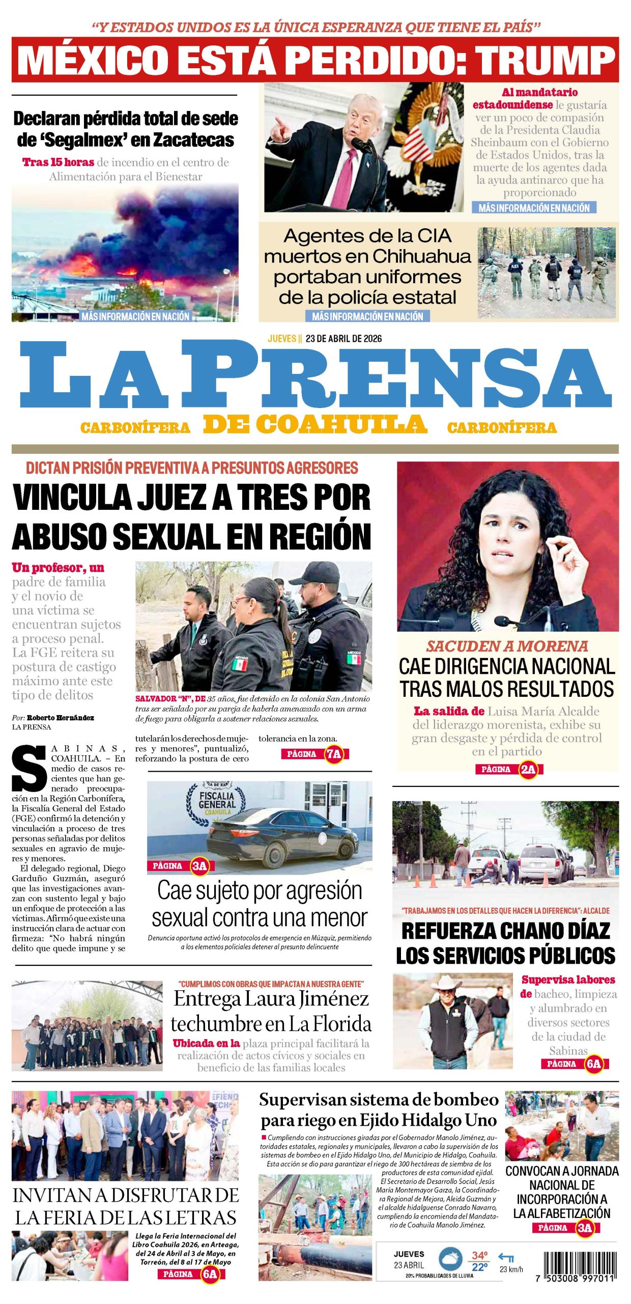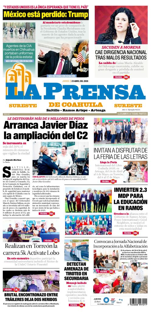 Por: Jesús Medina TRABAJO INTENSO… El Gobernador de Coahuila MANOLO JIMÉNEZ SALINAS habló acerca de lo importante que fue Marzo del 2026 para la historia...