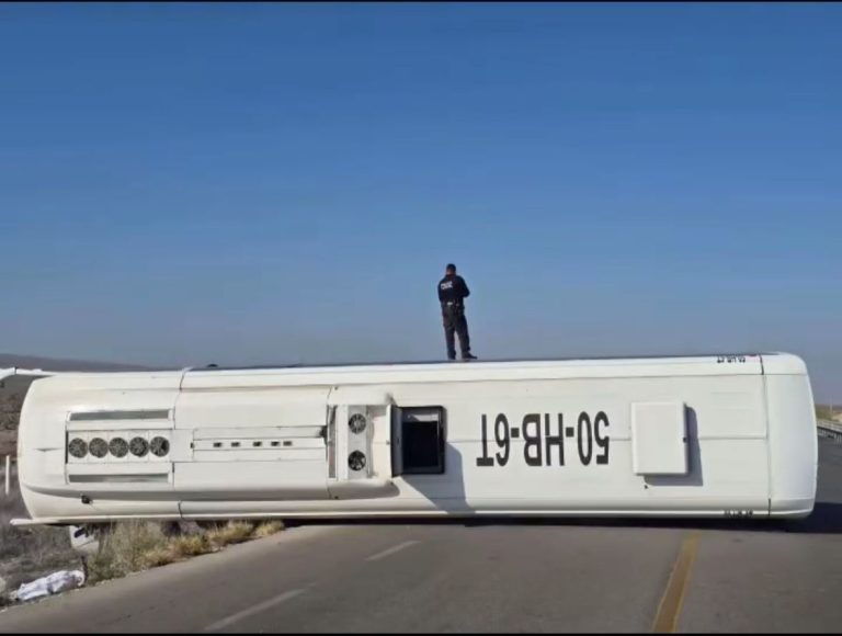 Queda atravesado sobre la carpeta asfáltica en la carretera 30, bloqueando completamente uno de los carriles Manolo Acosta La Prensa La volcadura de un autobús...