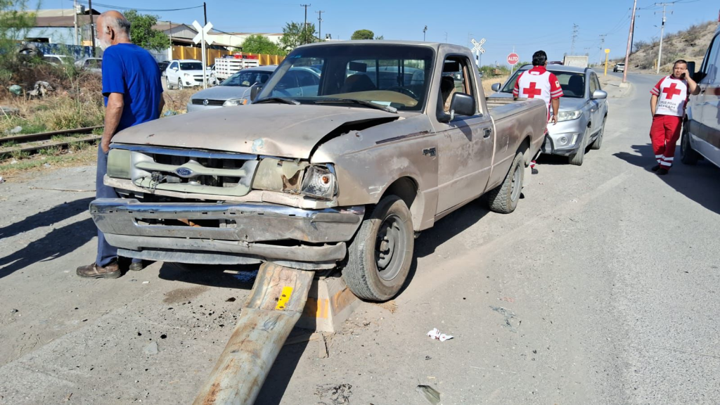 Tras el fuerte impacto contra el poste metálico, el automovilista presentó diversos golpes en el cuerpo, por lo que fue revisado por paramédicos.