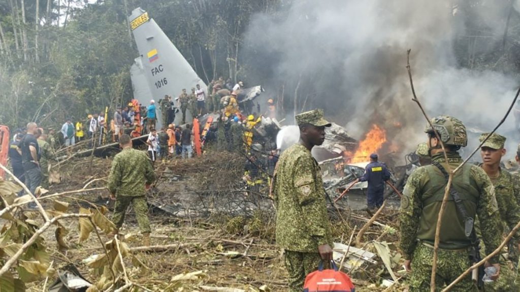 COLOMBIA.- Al menos 34 soldados murieron el lunes en el accidente de un avión militar Hércules C-130 que, con 121 personas a bordo, se precipitó a tierra en el sur de Colombia después de despegar de un aeropuerto de la selva amazónica, informaron autoridades gubernamentales locales y fuentes del Ejército.
