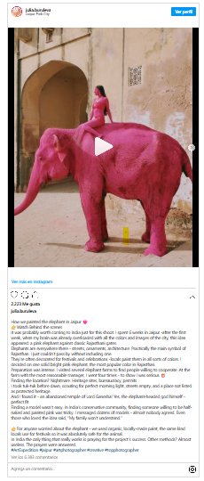 De acuerdo con información publicada por el medio The Hindustan Times, la fotógrafa rusa Julia Buruleva organizó una sesión tras permanecer seis semanas en la región. Su objetivo fue capturar la imagen de un elefante pintado de color rosa frente a construcciones locales.