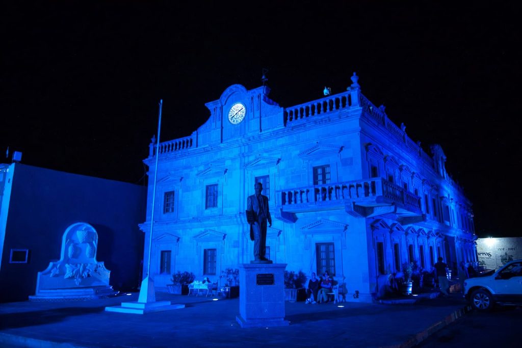 Parras, Coahuila.– La Presidencia Municipal de Parras se iluminó de azul la noche del pasado 2 de abril, en el marco del Día Mundial de la Concienciación sobre el Autismo, una fecha establecida por la Asamblea General de las Naciones Unidas desde 2008 con el objetivo de sensibilizar a la sociedad sobre el Trastorno del Espectro Autista (TEA).