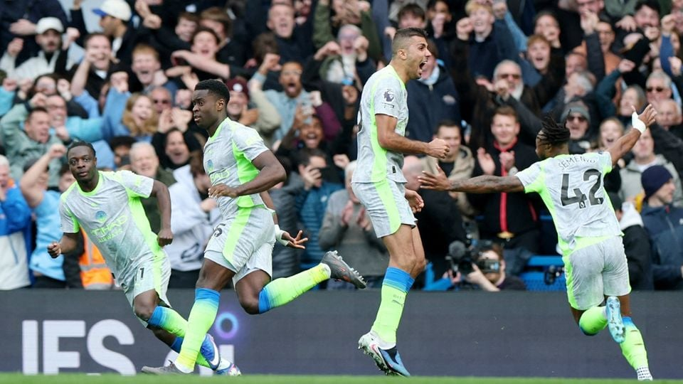 Apenas seis minutos después, los visitantes aumentaron la ventaja después de una gran jugada individual de Cherki que fue culminada por Marc Guéhi, y a falta de 20 minutos, Jeremy Doku puso el tercero en el marcador.
