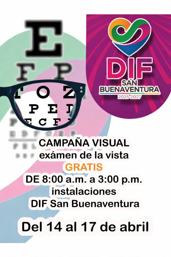SAN BUENAVENTURA, COAHUILA.- El Sistema DIF San Buenaventura invita a la ciudadanía a participar en la Campaña Visual de Examen de la Vista Gratuito, con el objetivo de contribuir al cuidado de la salud visual de la población.