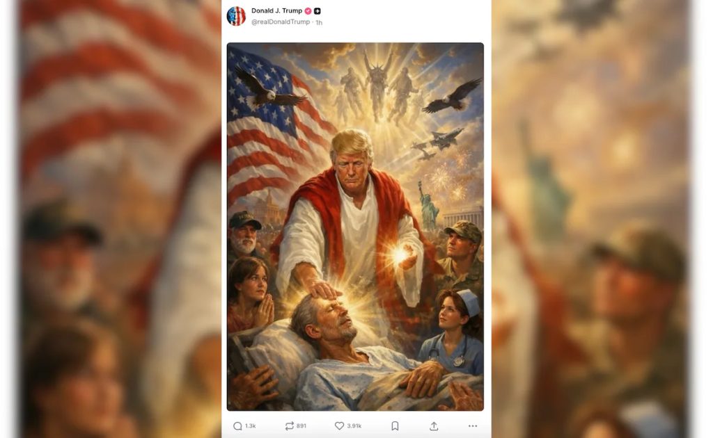 El Presidente Trump, publicó ayer una imagen generada por IA en la que aparecía como una figura parecida a Jesús, lo que le valió numerosas críticas, incluso de algunos conservadores religiosos que suelen apoyarle, antes de borrarla hoy.
