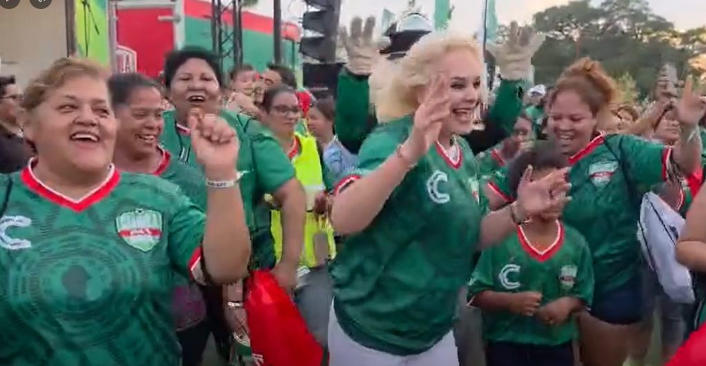 Habitantes de Múzquiz celebraron este domingo la próxima fiesta mundialista, en un evento lleno de alegría, con la asistencia de la alcaldesa Laura Jiménez, Gachupina, quien se unió a un espontáneo baile con música en vivo en la plaza, al ritmo de la cumbia.