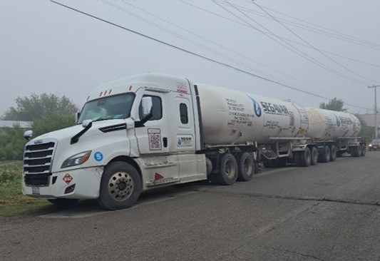 PIEDRAS NEGRAS, COAHUILA. – Elementos de la Guardia Nacional (GN) aseguraron un tractocamión doble remolque cargado con 90 mil litros de gas licuado de petróleo (LP), tras detectar diversas irregularidades administrativas mientras circulaba sobre la Carretera Federal 57.
