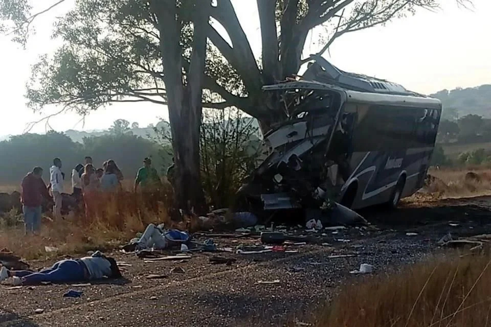 MÉXICO.- Un autobús de la línea Amealcenses se impactó contra un árbol en la Carretera Estatal 310, lo que dejó un saldo inicial de nueve personas fallecidas y 26 lesionadas en la zona limítrofe entre Amealco y San Juan del Río, en Querétaro.