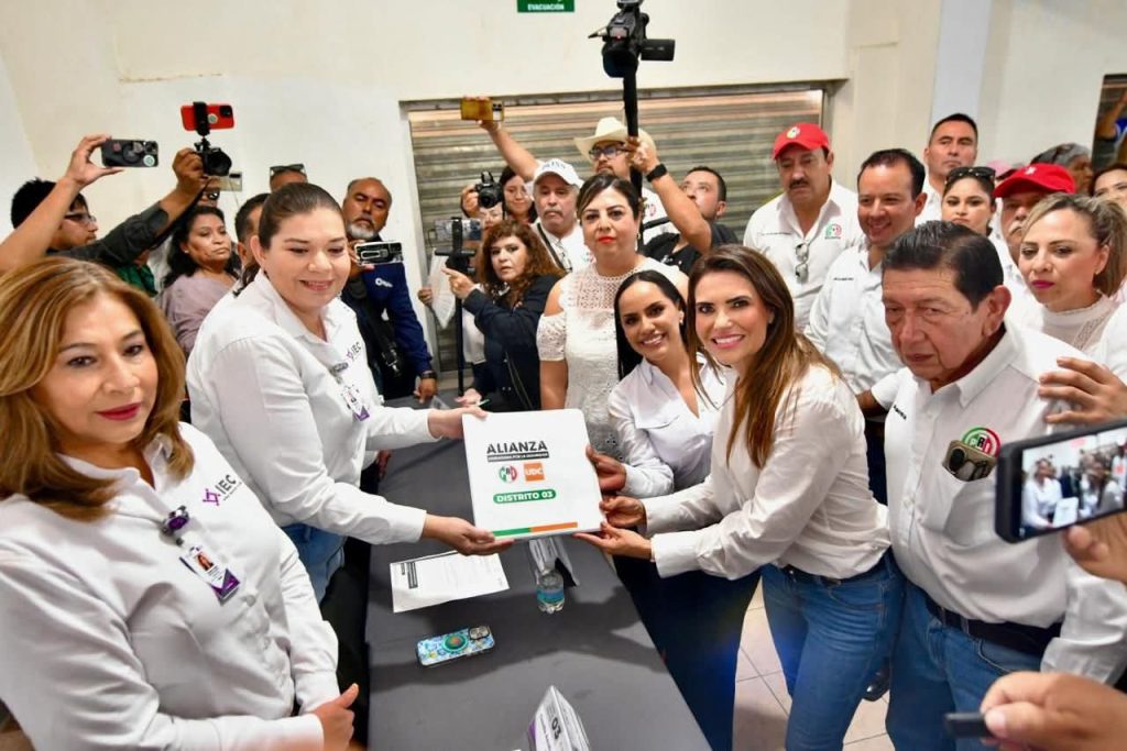 La alianza conformada por el Partido Revolucionario Institucional (PRI) y Unidad Democrática de Coahuila (UDC), cuenta con el respaldo de sectores, organizaciones y ciudadanos que la acompañaron desde la toma de protesta, así como su familia su esposo José Bogar Montemayor y sus hijos, para dar paso a una caminata desde el antiguo cine Flora por la calle Madero hasta las instalaciones del Instituto Electoral de Coahuila (IEC).