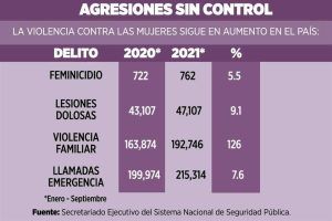 CIUDAD DE MÉXICO.-México llega al Día Internacional de la Eliminación de la Violencia contra la Mujer, que se conmemora hoy, con un aumento generalizado de...