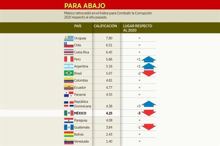 México descendió tres lugares en el Índice de Capacidad para Combatir la Corrupción 2021, que realiza la organización internacional Americas Society/Council of the Americas y...